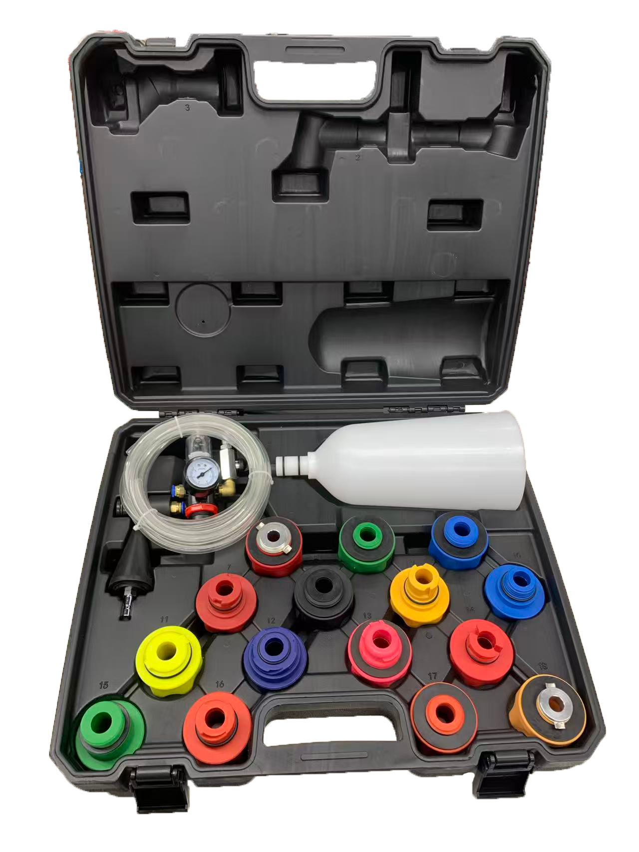 Oil funnel set complete with 12 differentadaptors gives a wide range of applications.2 Litre capacity funnel with angledadaptor and extension with swivel functionpermits use in limited spaces.
